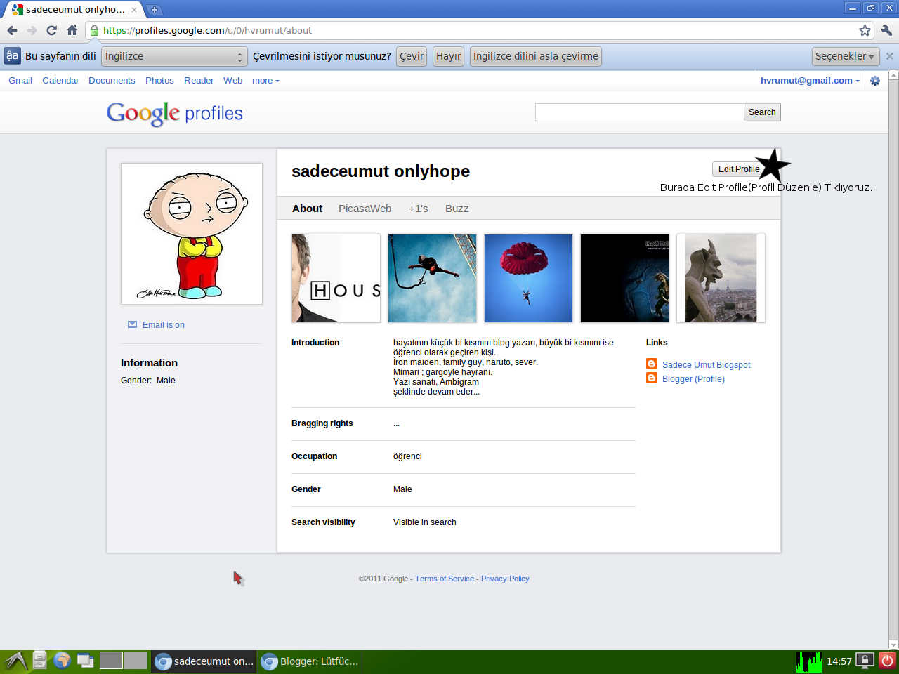 Bu işlem sonrasında +1'ler profilinizde şu şekilde https://profiles.google.com/u/0/hvrumut/plusones görünecek. Herkese açık olması paylaşımların veya yazıların daha çok kişiye ulaşmasında etken.